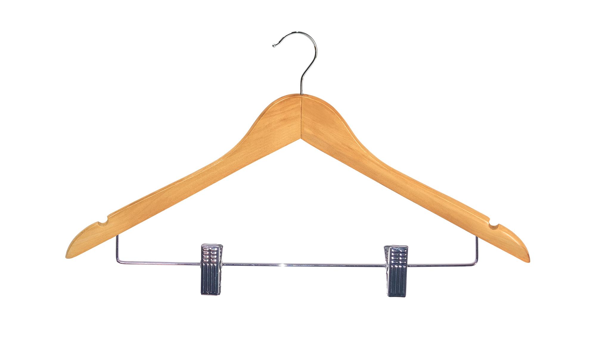 Corby of Windsor Hook Coat Hangers with Clips (Box of 100) - Light Wood