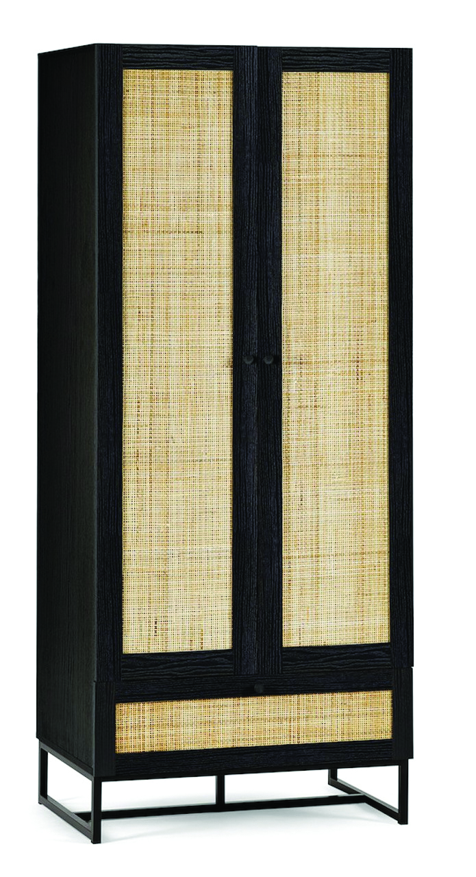 Padstow Black Rattan 2 Door Combination Wardrobe (D56 x W80 x H190cm)