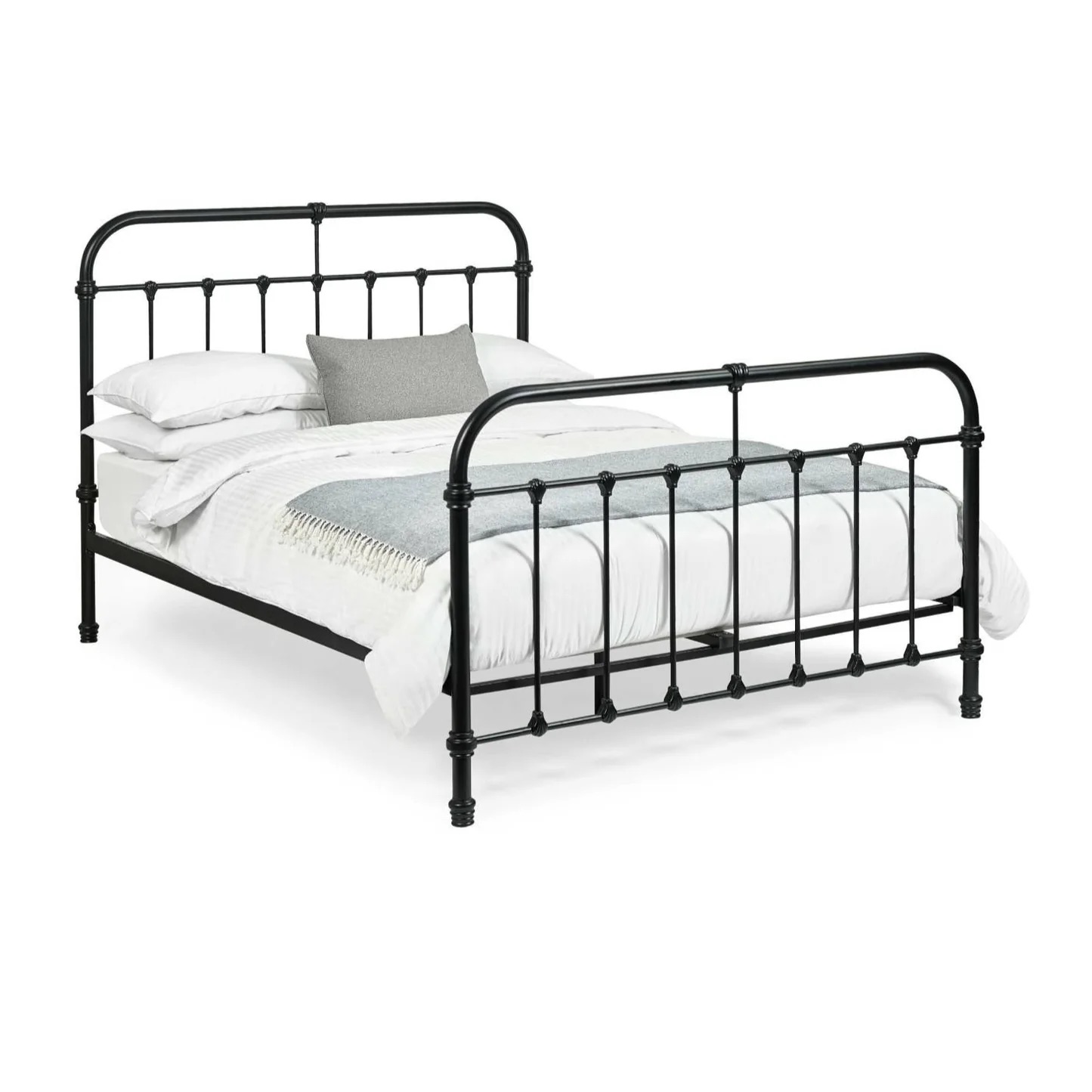 Add a touch of timeless elegance to your bedroom with this black satin metal bed. Crafted with a beautifully detailed metal frame, it effortlessly combines vintage charm with a sleek, modern design. The sturdy construction ensures lasting durability, while the smooth black satin finish enhances its classic appeal. Designed for both style and support, this bed is the perfect statement piece for those who appreciate the blend of traditional and contemporary design.