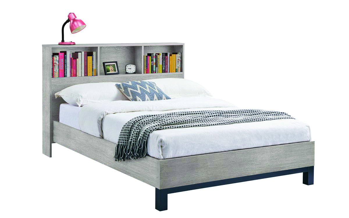 Bali Grey Oak and Black Bookcase Headboard LFE Bed - Double (D213 x W148 x H105cm)