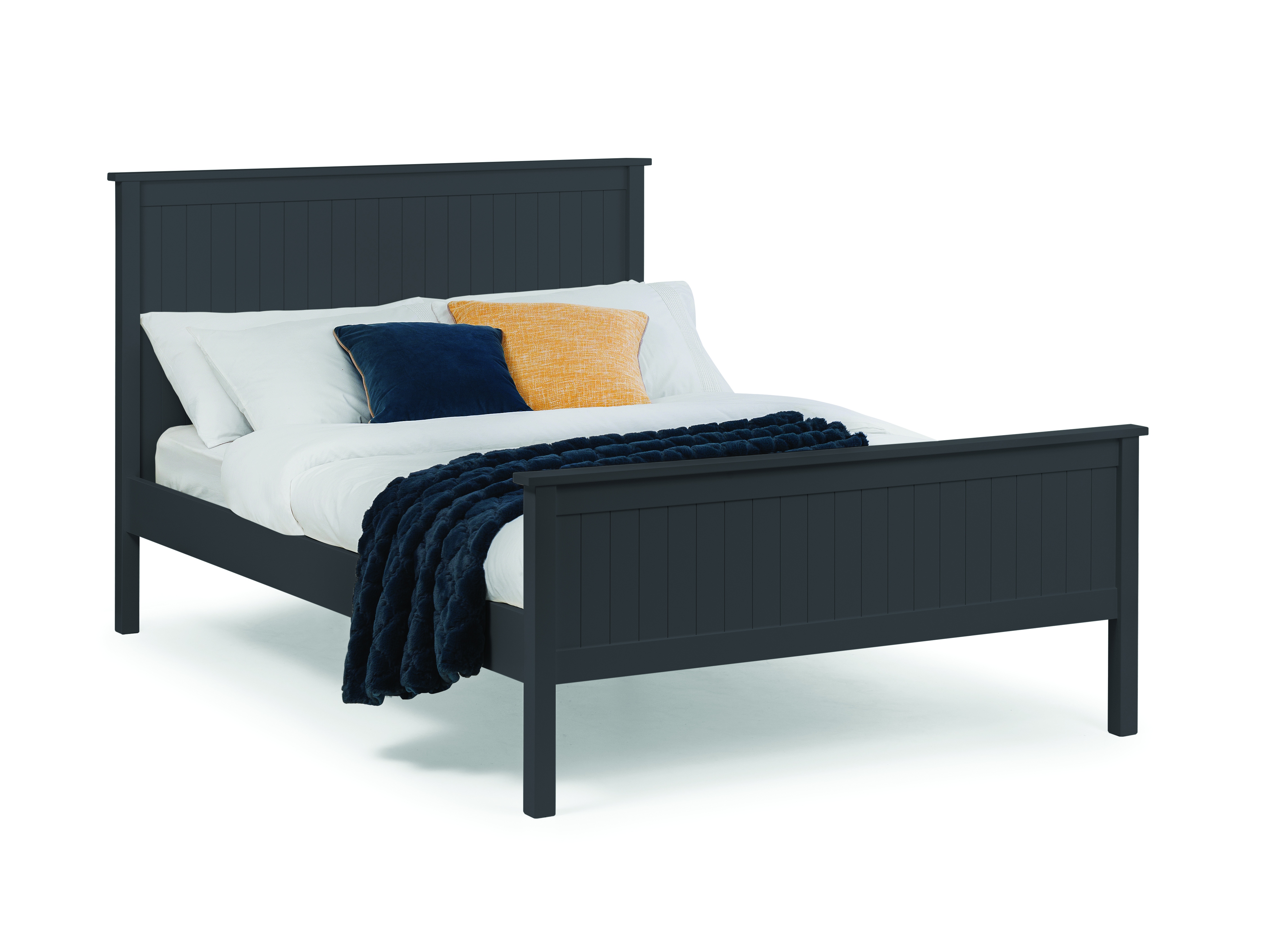 An elegant and simple New England style bed whose characteristic panelling is beautifully finished in an exquisite anthracite lacquer to create a soothing and refined aesthetic with timeless appeal. A solid slatted base ensures supreme comfort and prolonged mattress life.