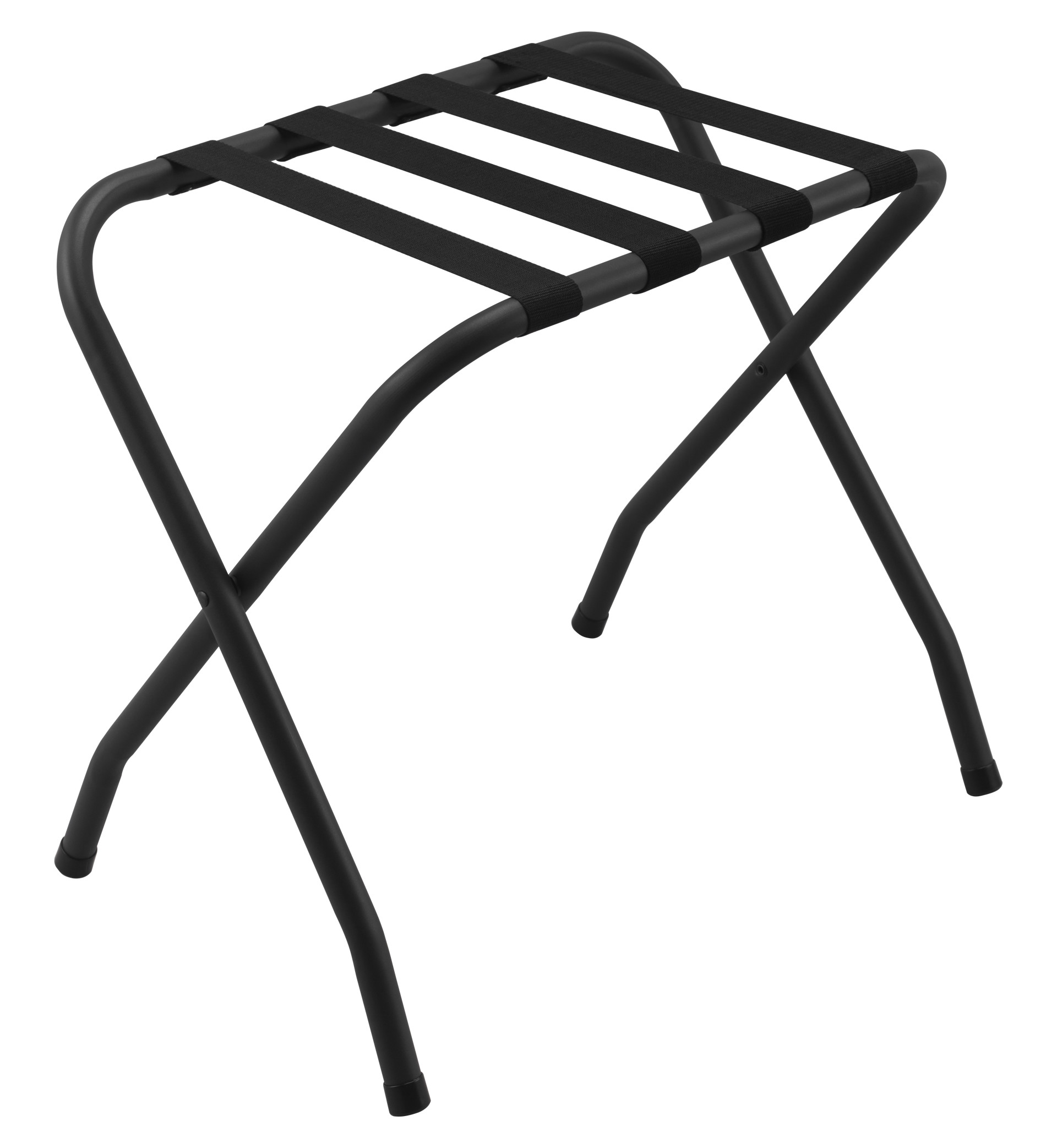 Corby Ashton is a stylish black metal luggage rack without rear bar is an ideal solution for storage of bags and cases in a hotel room. Manufactured from good quality tubular steel with black nylon straps with black finish. Holds up to 50kg in weight. Folds flat for easy storage. Dimensions (open): H48 x D40 x W62cm. Dimensions (closed): H63 x W5.5cm.