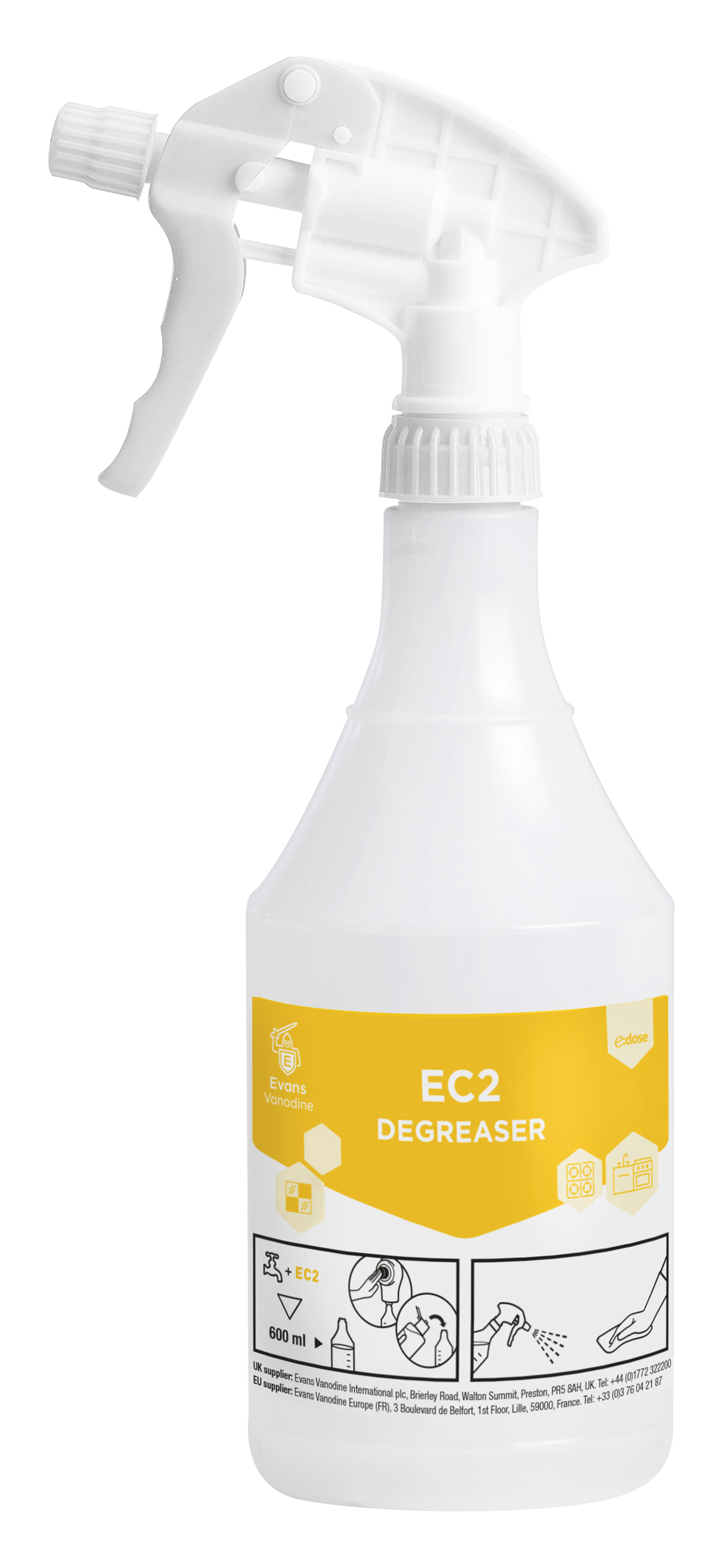 For use with ready made up solution of EC2 Degreaser, the Empty Bottle comes with an adjustable jet spray head and a colour-coded pre-printed bottle.
