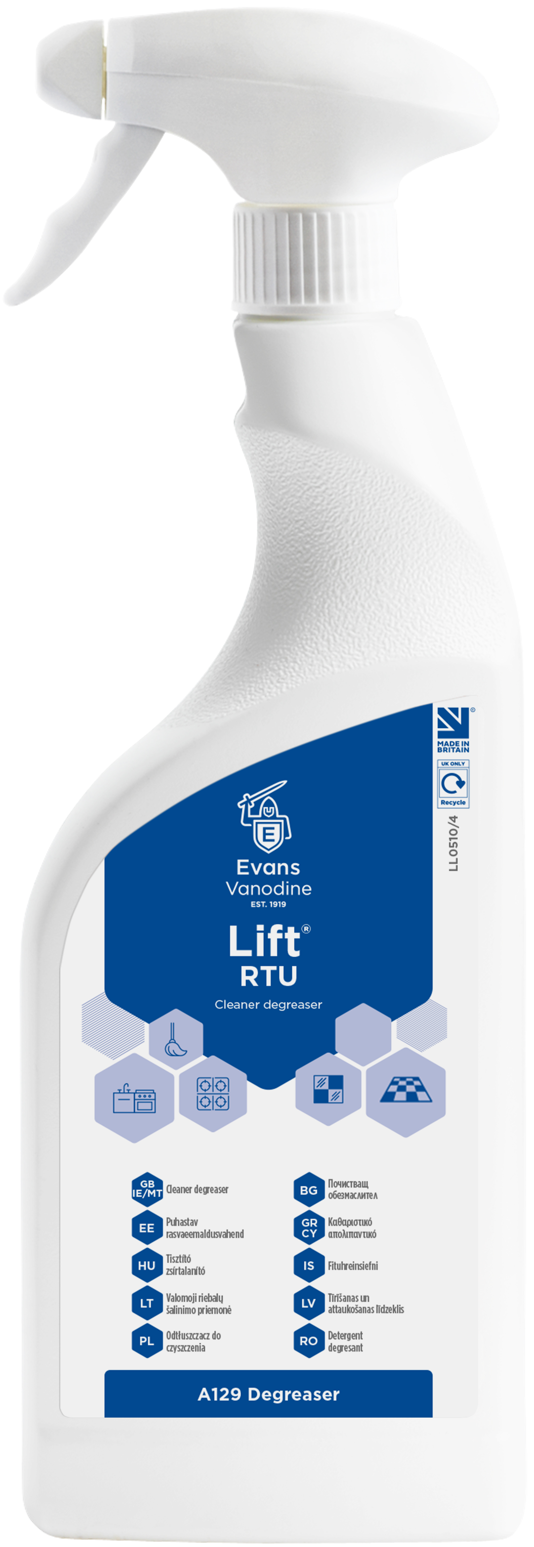 Evans Vanodine Degreasers Lift Unperfumed RTU Cleaner & Degreaser 750ml (Box of 6)