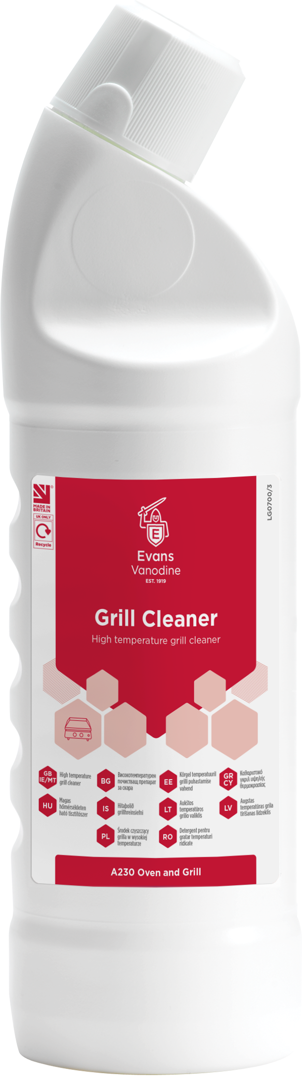 Powerful cleaner for griddles and hot plates. Designed to be used at high temperatures. •Strips grease build-up in just 60 seconds. •No need to cool or rinse grill; helping to eliminate downtime. •Fragrance-free; suitable for use in the food industry •Angled neck bottle for better directional application, complete with safety cap.