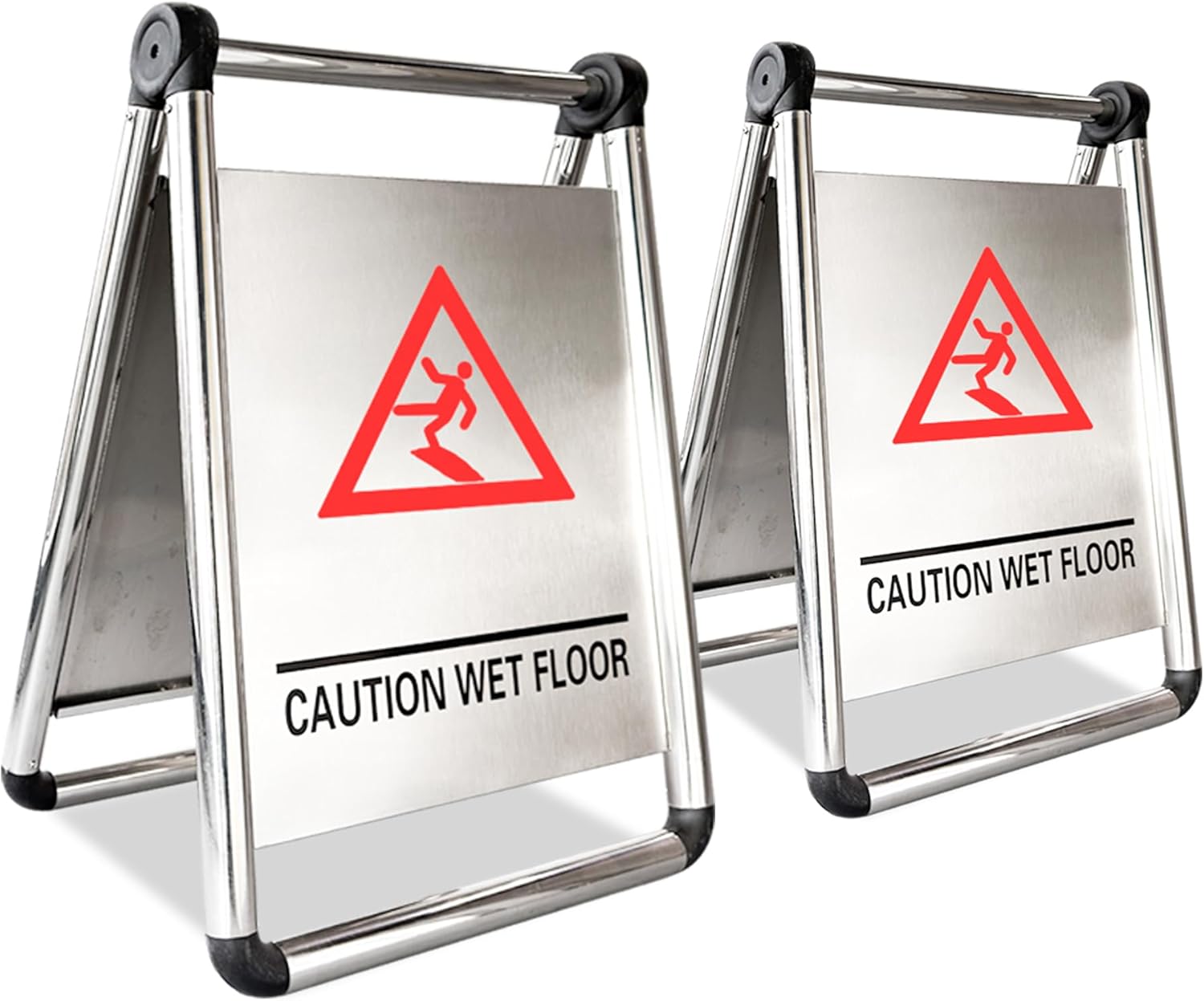 Stainless Steel Foldable 'Caution Wet Floor' Sign (Box of 2)