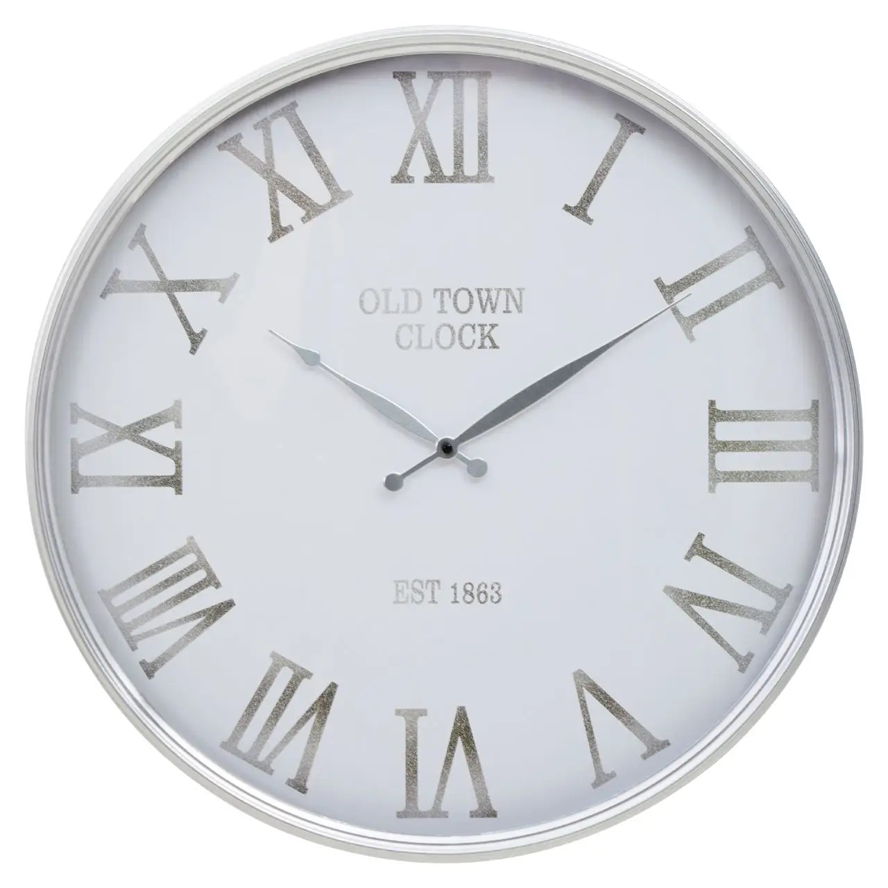 White & Silver Metal Roman Numeral Wall Clock (D5 x W60 x H60cm )
