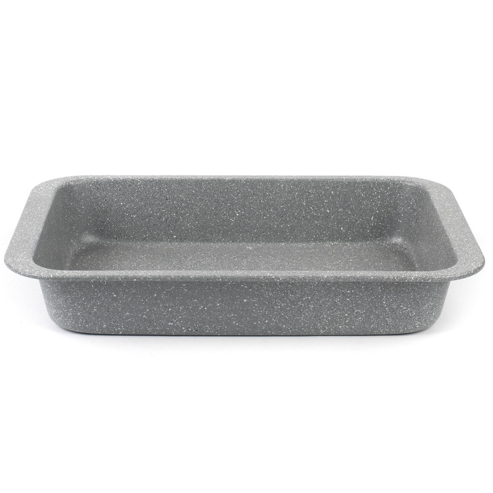 The Salter Marblestone Roaster 37 × 25 cm brings together robust engineering and elegant design for your roasting needs. Constructed from heavy-gauge carbon steel with a marble-effect, PFOA-free non-stick coating, it offers both durability and effortless food release. Designed to withstand oven temperatures of up to 220 °C, this roaster is ideal for cooking meats, vegetables, or whole joints. Its raised, sturdy walls help contain juices and prevent spills, while the non-stick surface ensures easier cleanup afterward. With a neutral grey marblestone finish, it blends seamlessly into modern kitchens, delivering both performance and style in one compact roasting pan.
