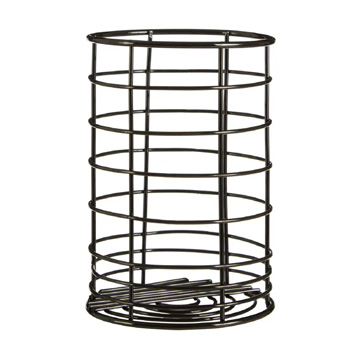 This cylindrical utensil holder features an open top which makes it easy to grab that spatula or whisker when its needed. Its made from tough enamel, with a sleek black finish with grey utensils graphic that will brighten up the kitchen worktop. A satin stainless steel trim complements the black, and wont wear when utensils are leaned against it.