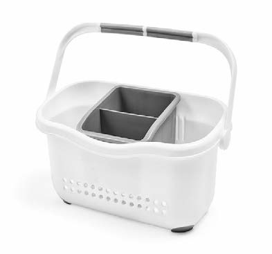 Organised storage for your sink side area. Use as a cutlery drainer or a caddy for your washing up tools. The handle can be opened in an upright position ideal for drying your dish cloth. Dimensions: Length: 12cm Width: 25cm Height: 10.3cm