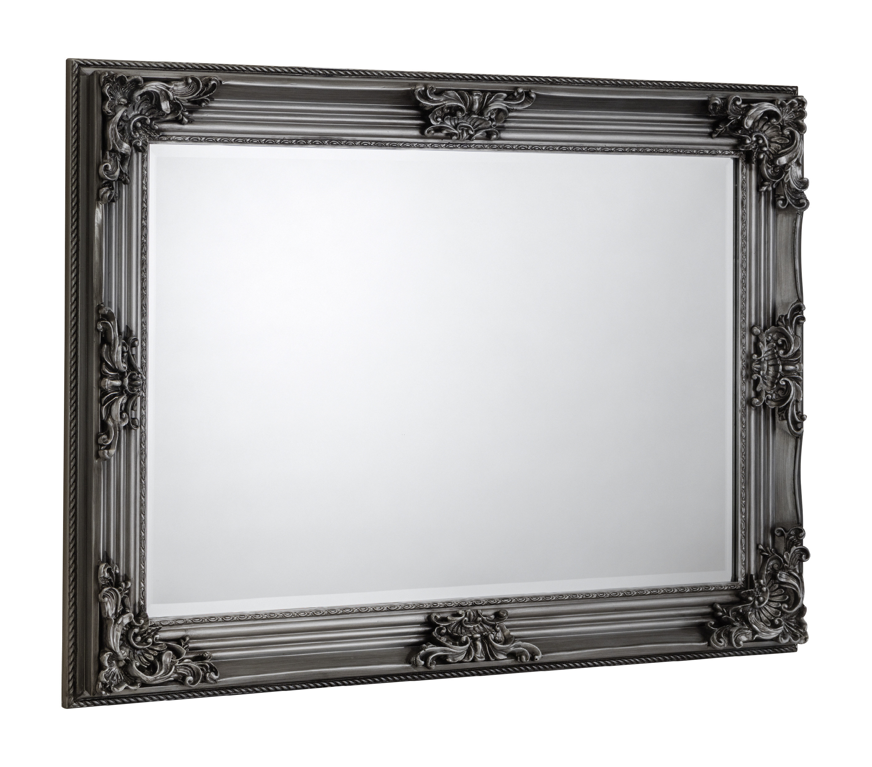 The Rococo wall hanging mirror is a contemporary take on a classic design. Featuring high quality bevelled edges with antique effect detailing in a pewter effect finish, suitable for a wide range of décor. Crafted from a hardwood frame with resin moulding, this mirror can be hung either in a landscape or portrait orientation suitable for any room. Size: D4 x W110 x H80cm