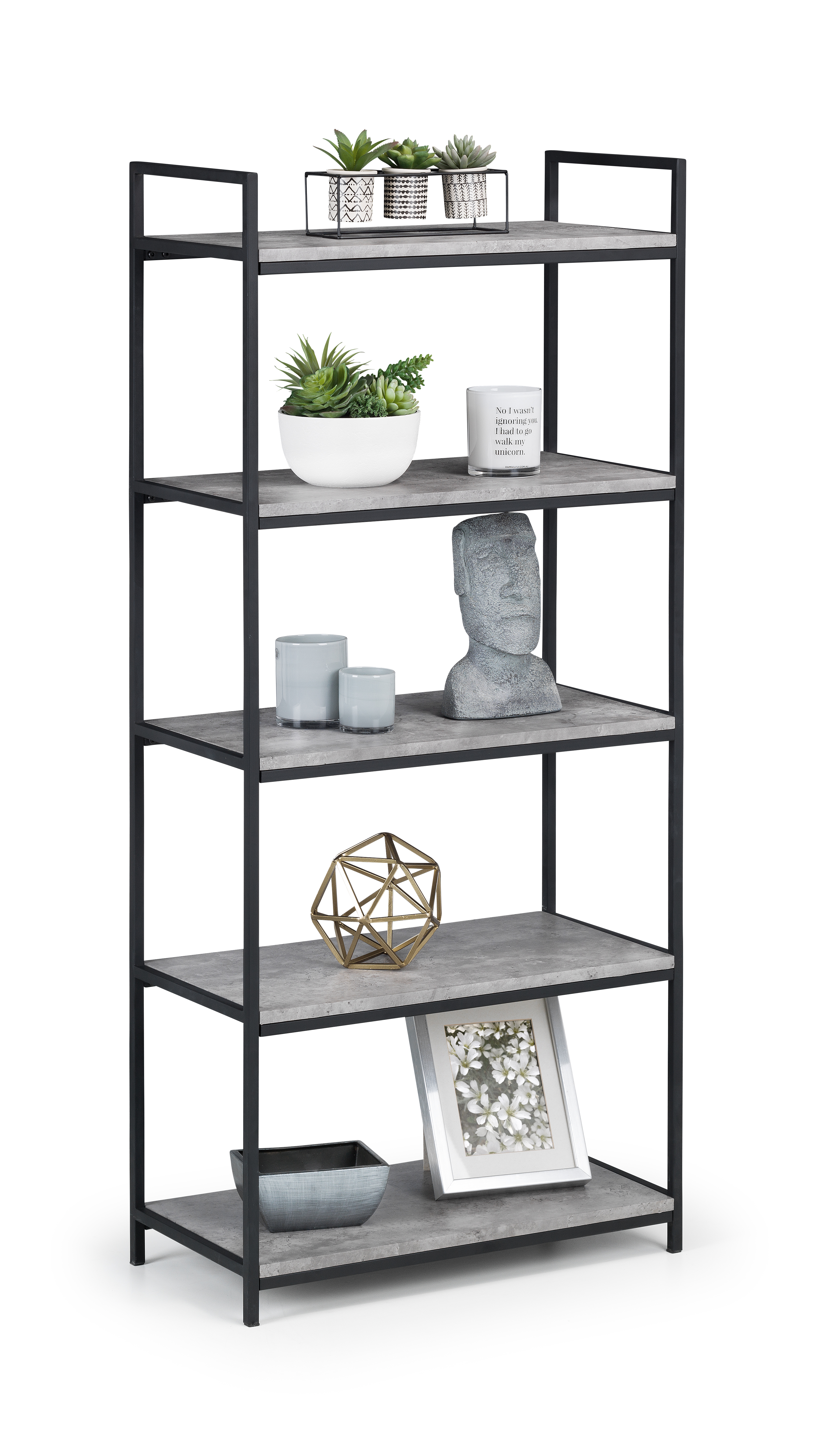 Simplistic in design with a contemporary style, the Staten Tall Bookcase will add a stunning industrial look to any living and dining area. Constructed from a black coated metal frame, complemented by a striking concrete effect tops, to create a very stylish, modern product. Part of the Staten Dining and Occasional Collection.