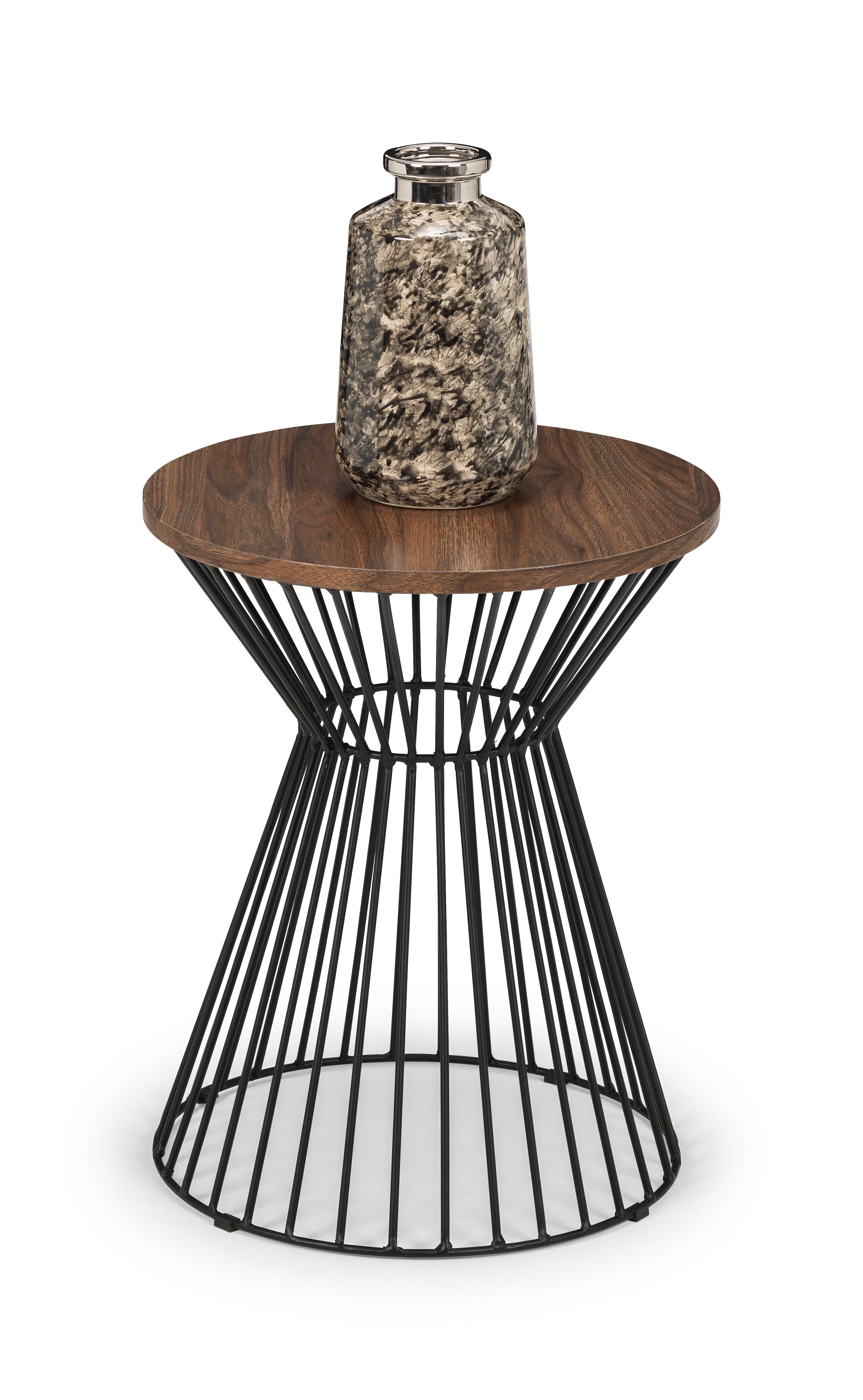The Jersey Lamp Table will add a contemporary addition to any living area. Featuring a black wire frame with a fixed round walnut effect top, this lamp table creates a striking industrial feel with a classic contrast.