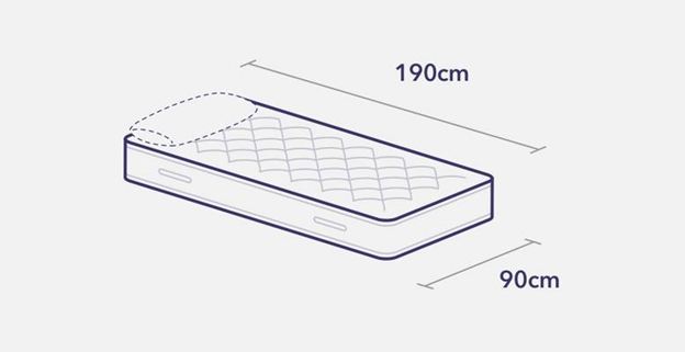 Single beds and mattresses measure 90cm wide and 190cm long (3ft wide and 6ft 3” length). As the name suggests, they’re ideal for one person and small bedrooms. They’re also great for children as they are cheaper, but still account for all growth spurts from roughly 4 years of age right through to teens.