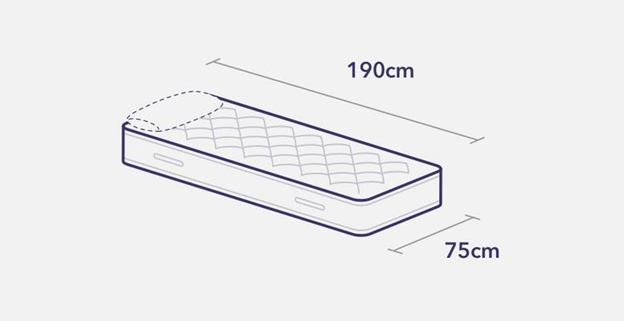 Small single bed and mattresses dimensions are 75cm wide and 190cm long (2ft 6” wide and 6ft 3” length). Small singles are designed to fit narrower kids' bed frames and guest beds. They’re ideal for saving space and for spare rooms.