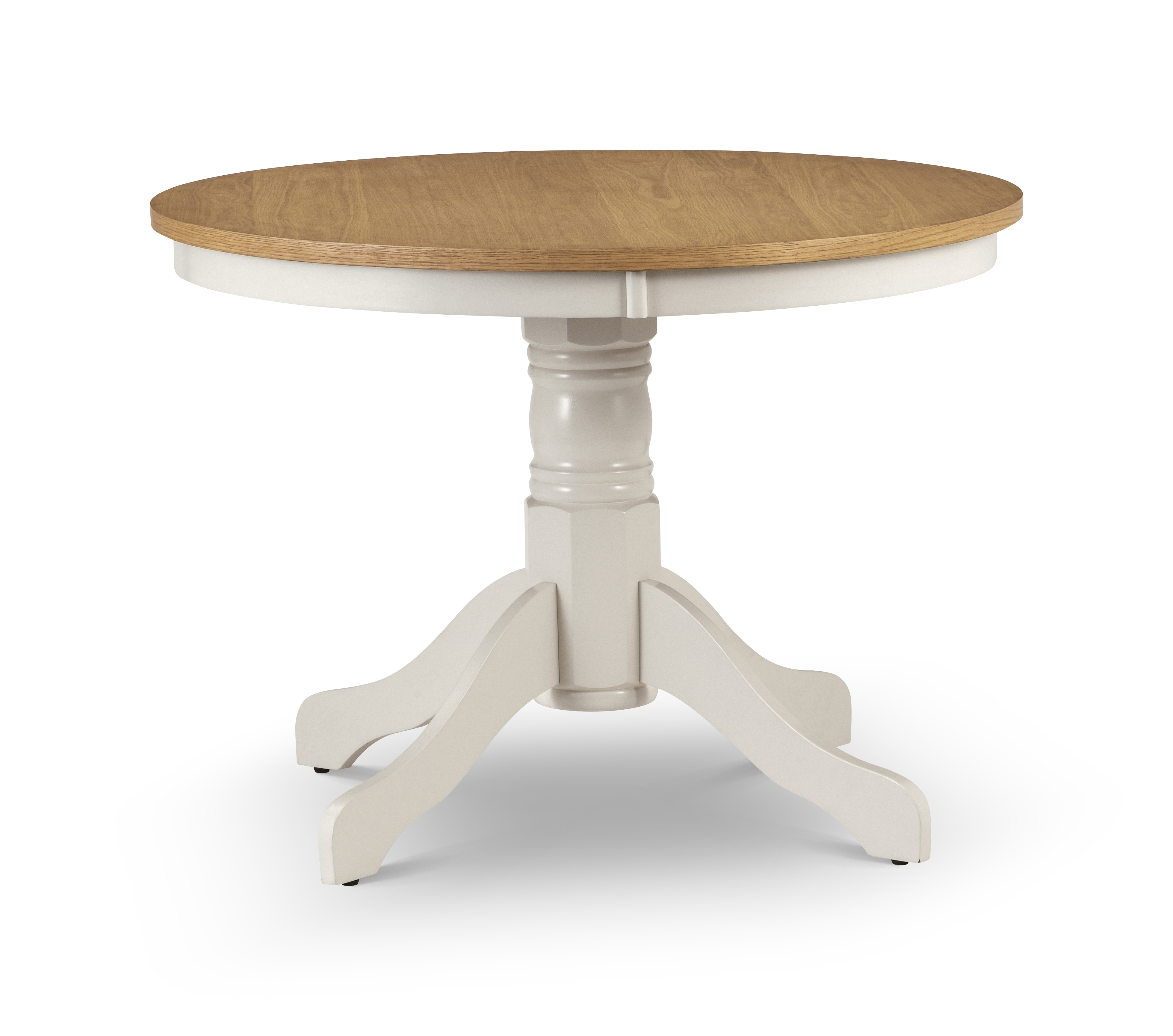 Crafted from solid rubberwood and a real oiled oak veneer 25mm top, this is the ideal dining table to please your dinner guests. In an elegant circular grey lacquered finish, with a classic pedestal base suitable for any dining room decor. A wide range of co-ordinating items are available in the Davenport collection.