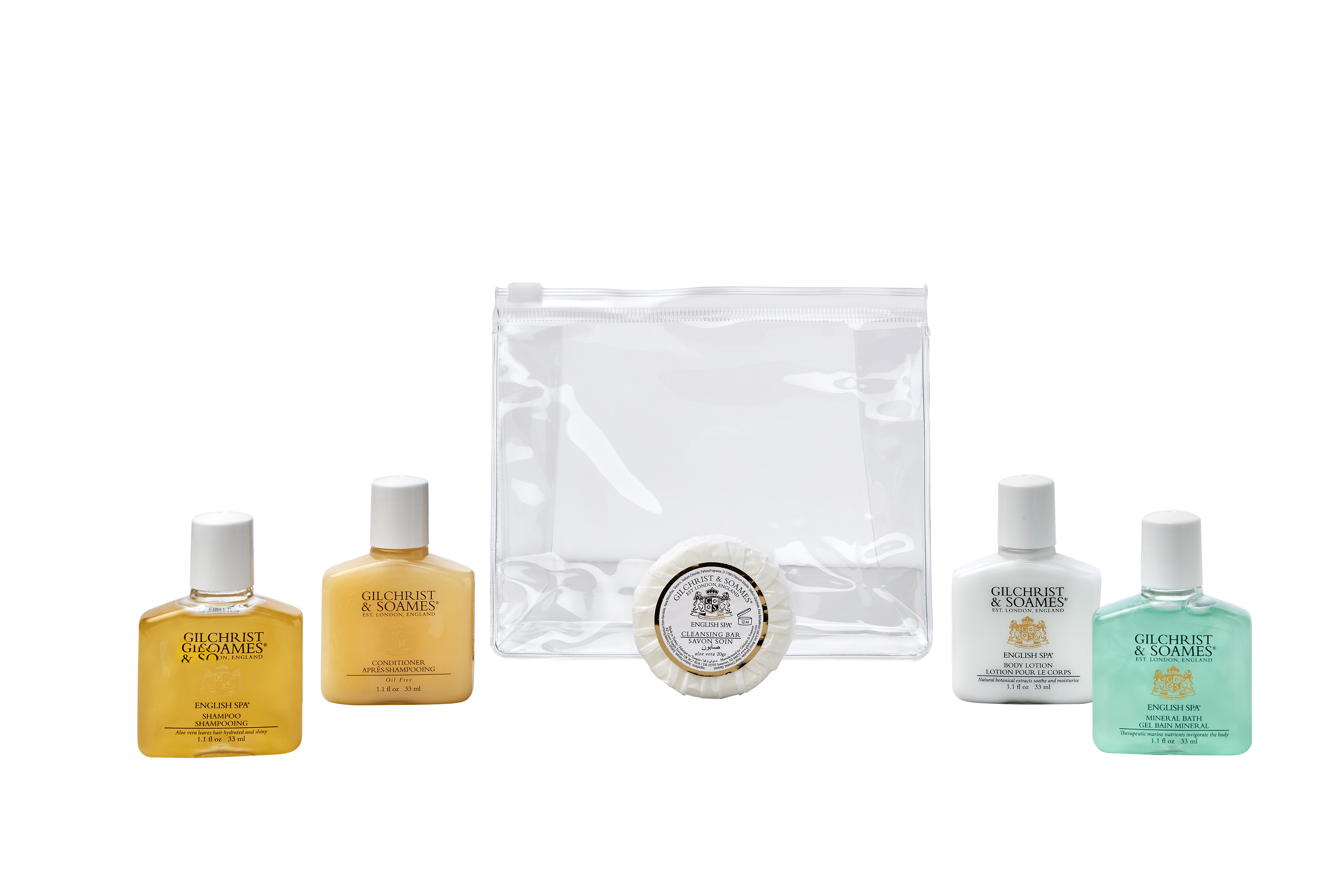 Clear Grip Lock Bag Toiletries Welcome Pack (Box of 50) - Gilchrist & Soames English Spa Bottle