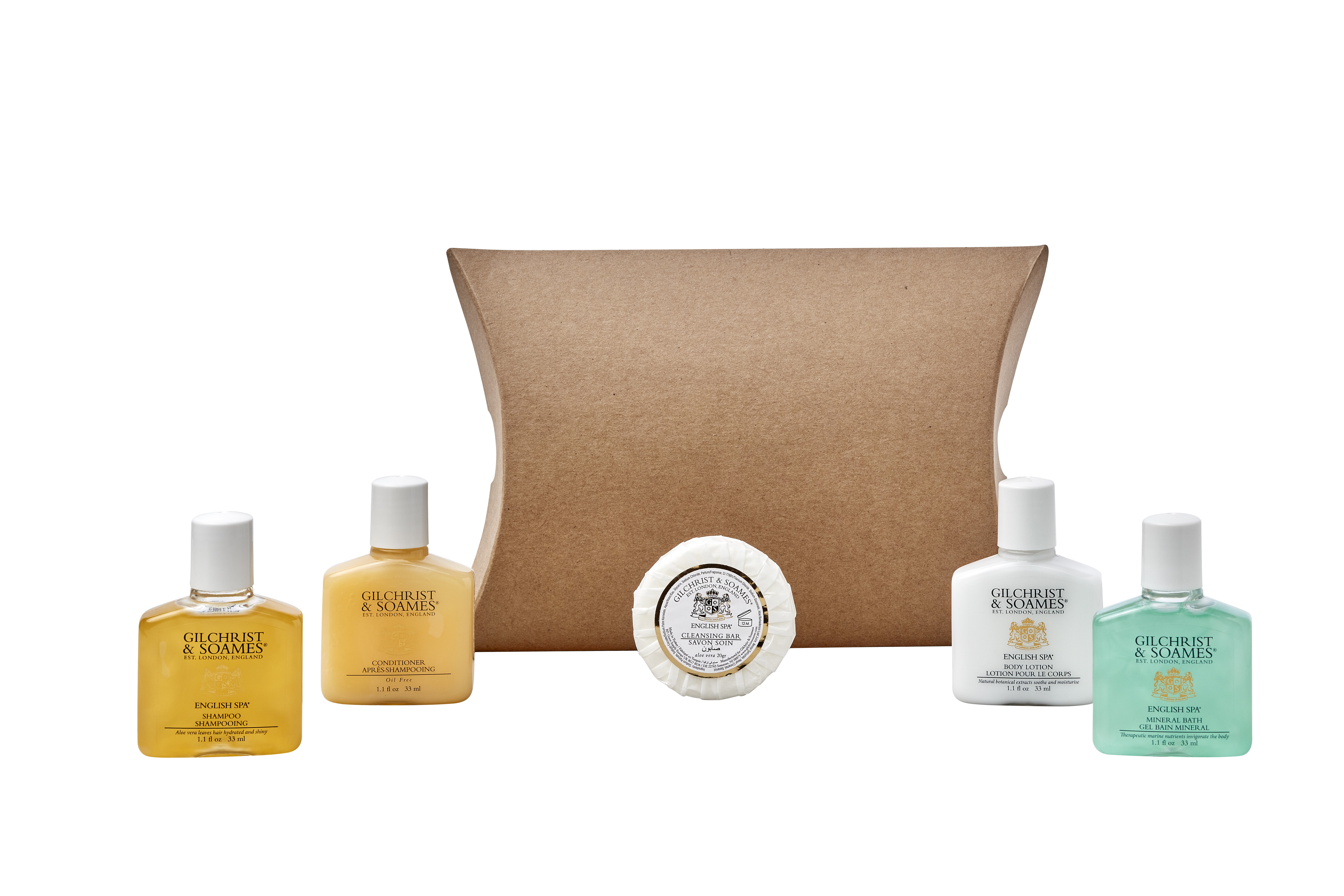 Kraft Pillow Box Toiletries Welcome Pack (Box of 50) - Gilchrist & Soames English Spa Bottle