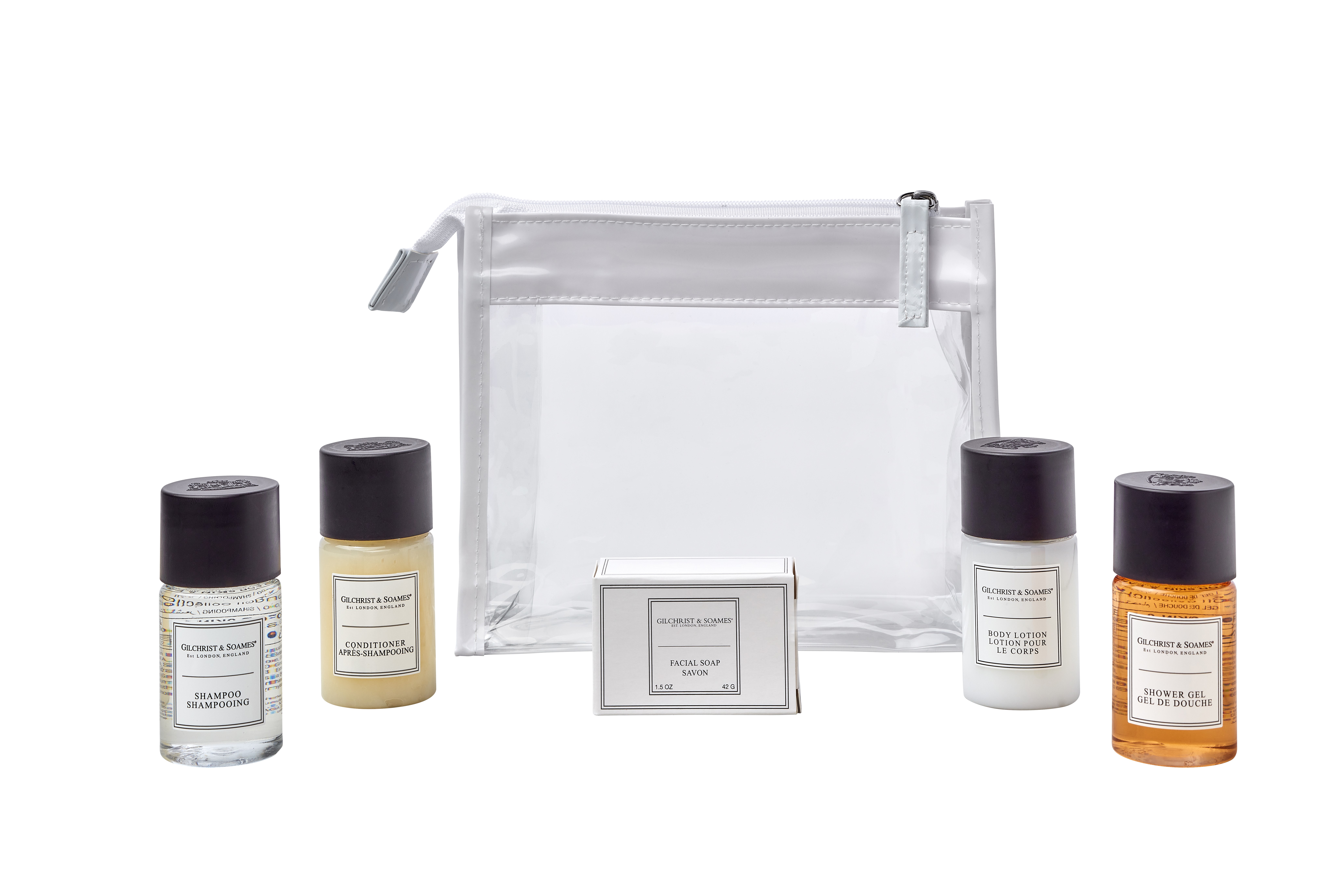 Clear & White Zipped Bag Toiletries Welcome Pack (Box of 50) - London Collection Bottle